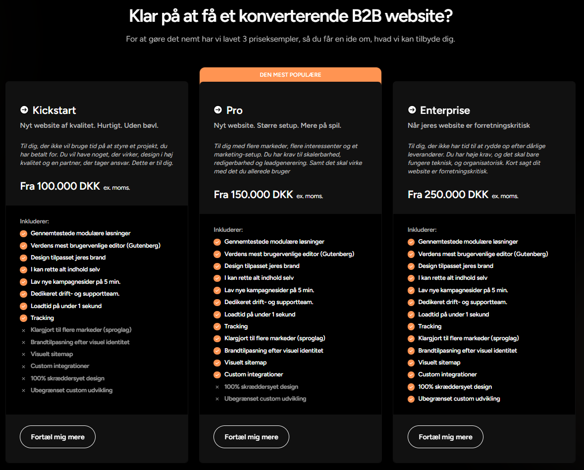 Hvis du oplever, at jeres leads ikke er realistiske mht. budget, eller de synes, I er dyre, skal du overveje at skrive et prispunkt på landingssiden?