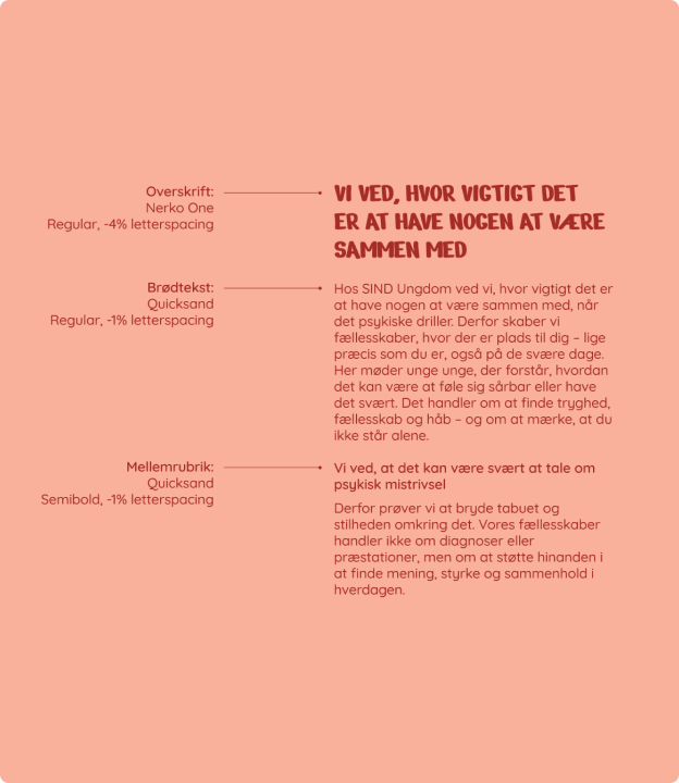 Vi tog noterne fra workshoppen og oversatte det til et brandløfte, historien bag, tagline og value proposition, som vi så kørte en iterativ proces på for at forfine sammen med de gode folk hos SIND Ungdom.