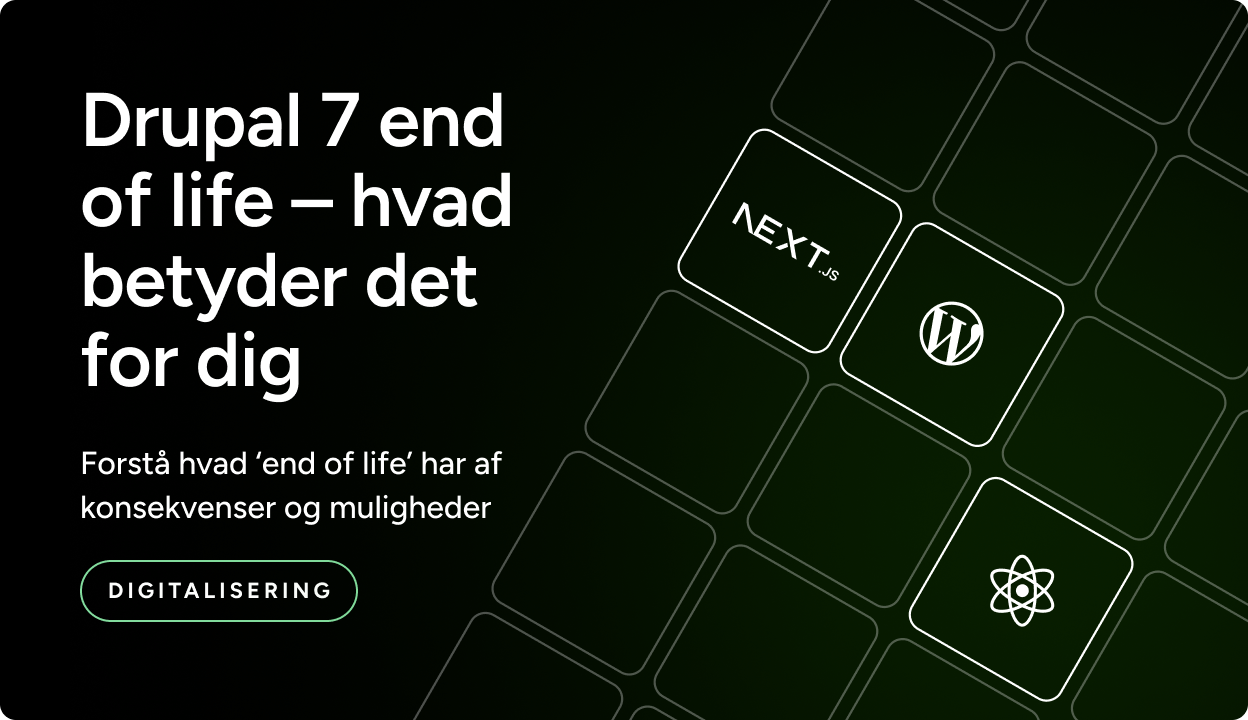 Fra januar i år (2025) gik Drupal 7 officielt i ‘end of life’ stadiet, hvilket betyder, at Drupal fællesskabet stopper med, at videreudvikle og vedligeholde versionen. Kører du forsat en Drupal 7 installation, så vil du stoppe med at modtage sikkerhedsopdateringer eller fejlrettelser fra Drupal-fællesskabet.