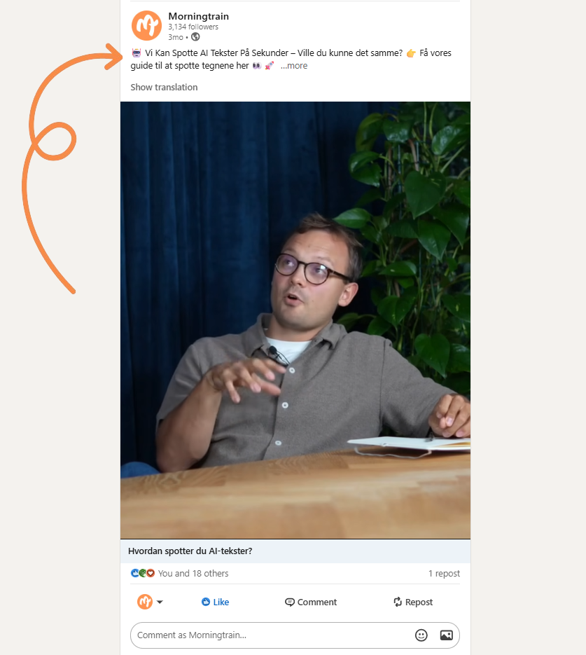 Brug emojis til at fremhæve dine pointer, du vælger selv hvor ”goofy” det hele må være. Og inden du siger ”man skal ikke bruge Emojis i erhverv”, så lad os lige stoppe dig. Alt du ser på LinkedIn er B2B, og du vil se mange virksomheder benytter sig af dem, netop for at guide deres læser.