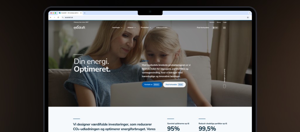 Eksempelvis så har virksomheden Exodraft adapteret taglinen ‘Din energi. Optimeret.’ Det er deres “promise”. Mens vi venter på den grønne omstilling, så optimere vi den energi vi har nu – uanset om det er varme, el eller nedbringelse af energiomkostninger i produktionen.