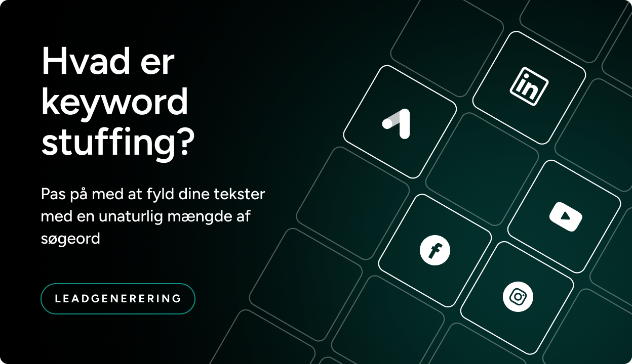 Keyword stuffing er, når du forsøger at få en side til at rangere på et bestemt søgeord ved at gentage det alt for mange gange. Det er den SEO-taktik, der i 2010 virkede lidt for godt – og som i dag bliver modarbejdet af alle Googles opdateringer.