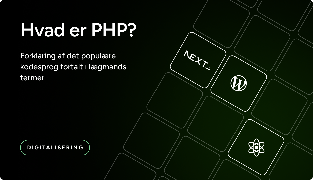 PHP er et programmeringssprog, der kører på serveren og bestemmer, hvad der skal vises på din hjemmeside. Det bruges til at programmere logikken bag hjemmesider, webshops og andre løsninger, hvor indholdet ændrer sig efter brugeren.
