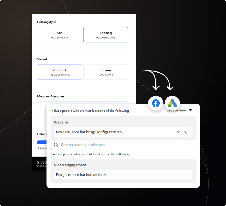 Vi kortlægger jeres kunders købsrejse igennem workshop med jer og ved opsætte tracking der binder data fra CRM, website, marketingkanaler m.m. sammen, så vi ikke famler i blinde.