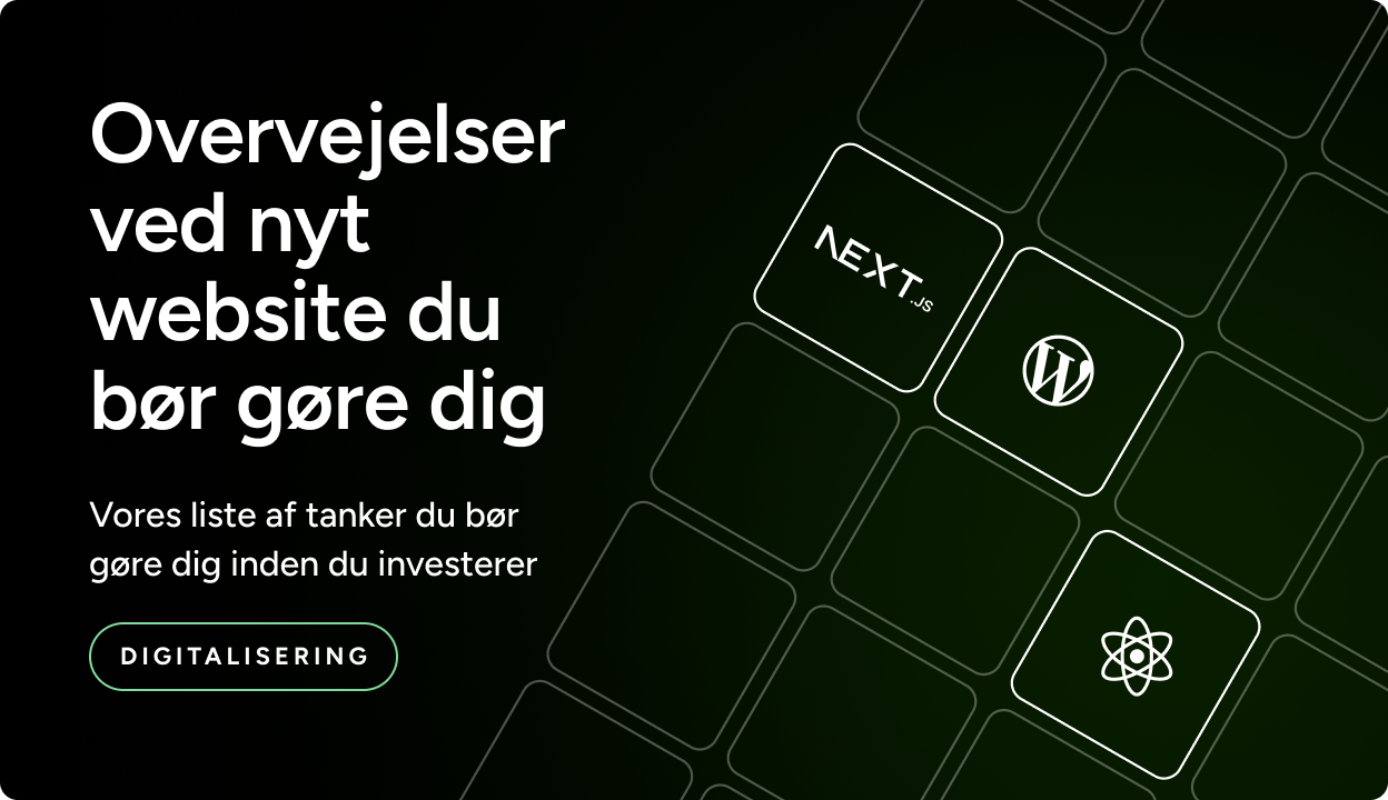 Når du først kaster dig over alle disse overvejelser, så vil du hurtigt opleve, at dine ønsker, eller dine behov overstiger enten budgettet eller deadline, og det er kun positivt – det betyder at du har et roadmap med nye udviklingsmuligheder.