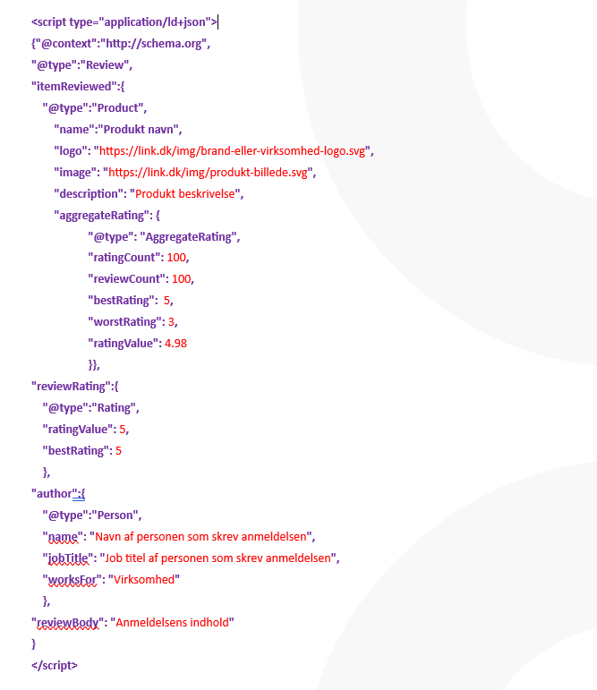 Du tilføjer ‘review’ schema på din hjemmeside, ved at gøre følgende:
