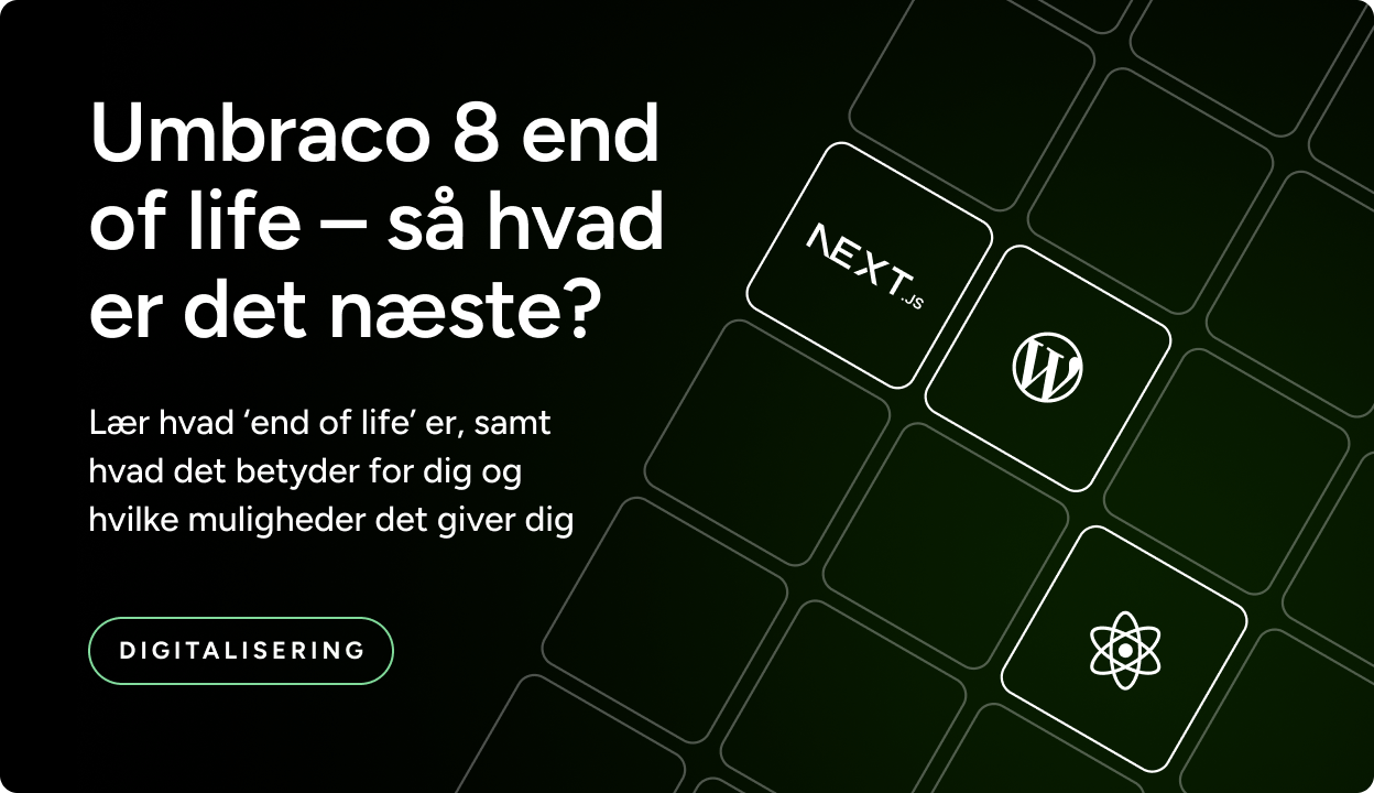 Når en Umbraco-version når end of life, som version 8 gør den 24. februar 2025, betyder det, at CMS-platformen ikke længere vil blive supportet, og der vil hverken blive udviklet ny funktionalitet, rettet fejl eller ydet support på løsningen.