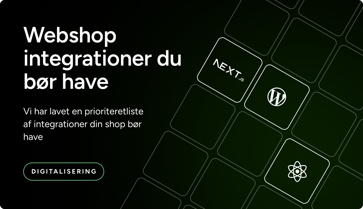 I dette indlæg har vi prøvet at kategorisere de forskellige integrationsmuligheder til din webshop, og liste dem i en slags prioriteret liste fra 1 til 9. ‘1’ værende: ”Hvad skal du bare have” og ‘9’ værende: ”Hvad kunne du overveje”.